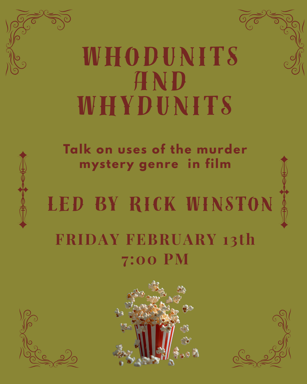 The Friends will host a film series this winter based on Rick’s talk with dates and times TBA.