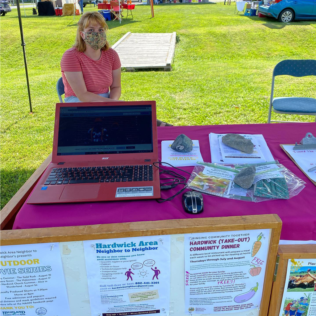 The 2020 pandemic sparked the grassroots founding of Hardwick Neighbor to Neighbor. Over 3,000 masks were made and distributed by volunteers. HCTV spots, entitled “Who do you wear your mask for?” promoted the use of these masks. A Facebook Page was established to share resources and disseminate basic information. Youth organized movie nights and a virtual party were hosted to address a widespread sense of isolation.