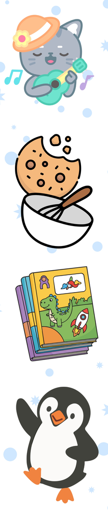 Books, songs, art activities,